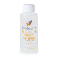 Freshscent All-N-One Shampoo/Shave Gel/Body Wash comes in a convenient travel size 2 oz. bottle